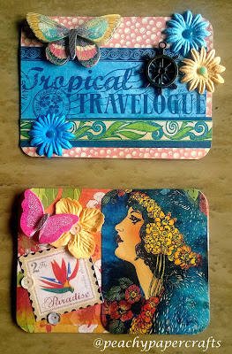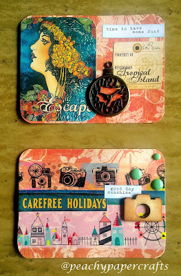Design Team sister Sue from My Sheri Crafts is challenging us to make a project featuring the beach! I just got back a couple of weeks ago from a month-long vacation, most of which was spent on the beach, so I was more than inspired to make some handmade Project Life cards with a horizontal aspect. I used paper from Graphic 45, embellishments from Close To My Heart, K&Co and The Paper Studio, flowers from Prima, and washi tape from Recollections, mt and The Paper Studio.