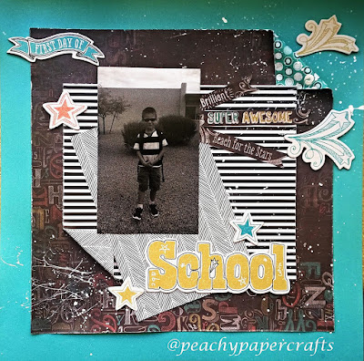 School started a little too early for my boy this month, but he was all smiles. Design team sister Raquel, challenges us to create a project with a "back- to-school" theme, and I had to make a layout capturing the moment. I used a paper packet and chipboard set from Close To My Heart's Chalk It Up and La Vie En Rose (retired) lines. I splattered some white gesso and distressed the paper edges. I had fun making this layout, that I did not even notice that it did not have any bling, lace or flowers. lol!